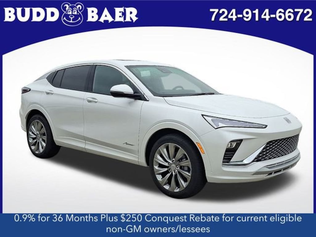 What Does Budd Baer Buick Offer Drivers from Washington, Canonsburg, St. Clairsville, Bethel Park and Wheeling? Truly Exceptional Customer Service from Every Angle. This vehicle comes equipped with Avenir Advanced Safety Package (Adaptive Cruise Control, Front Intermittent Rainsense Wipers, Lane Change Alert with Side Blind Zone Alert, Power-Adjustable Outside Heated Mirrors, and Rear Cross Traffic Alert), Preferred Equipment Group G04, 2 USB Ports (1 Type-A, 1 Type-C), 2-Way Power Driver Lumbar Control, 3.50 Final Drive Axle Ratio, 4-Way Manual Front Passenger Seat Adjuster, 4-Wheel Disc Brakes, 6 Speakers, 8-Way Power Driver Seat Adjuster, ABS brakes, Air Conditioning, All-Weather Floor Liners, Alloy wheels, AM/FM radio: SiriusXM, Auto High-beam Headlights, Auto-dimming Rear-View mirror, Automatic temperature control, Brake assist, Bumpers: body-color, Compass, Delay-off headlights, Driver door bin, Driver vanity mirror, Dual front impact airbags, Dual front side impact airbags, Electronic Stability Control, Emergency communication system: OnStar, Exterior Parking Camera Rear, Front anti-roll bar, Front Bucket Seats, Front Center Armrest, Front reading lights, Front wheel independent suspension, Fully automatic headlights, Heated door mirrors, Heated Driver and Front Passenger Seats, Heated front seats, Heated steering wheel, Illuminated entry, Low tire pressure warning, Occupant sensing airbag, Outside temperature display, Overhead airbag, Overhead console, Panic alarm, Passenger door bin, Passenger vanity mirror, Perforated Leather-Appointed Seat Trim, Power door mirrors, Power driver seat, Power Liftgate, Power steering, Power Tilt-Sliding Moonroof with Manual Sunshade, Power windows, Premium 6-Speaker Audio System Feature, Radio data system, Radio: AM/FM Stereo Audio System, Rear Parking Sensors, Rear seat center armrest, Rear window defroster, Remote keyless entry, Security system, SiriusXM Trial Subscription, Speed control, Split folding rear seat, Steering wheel mounted audio controls, Tachometer, Telescoping steering wheel, Tilt steering wheel, Traction control, Trip computer, Turn signal indicator mirrors, Variably intermittent wipers, Wheels: 19 Avenir Premium Pearl Nickel Aluminum, and Wireless Apple CarPlay/Wireless Android Auto. KBB Fair Market Range High: $31,100 Avenir 28/32 City/Highway MPG