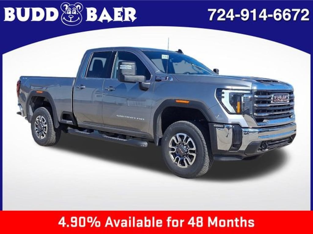 What Does Budd Baer GMC Offer Drivers from Washington, Canonsburg, St. Clairsville, Bethel Park and Wheeling? Truly Exceptional Customer Service from Every Angle. This vehicle comes equipped with Preferred Equipment Group 3SA (120-Volt Bed Mounted Power Outlet, 120-Volt Instrument Panel Power Outlet, 2 Charge-Only Rear USB Ports, 2 Charge/Data USB Ports, 2-Speed Electronic Shift Transfer Case, 4-Way Manual Driver Seat Adjuster, Chrome Surround Grille with Chrome Insert Bars, Deep-Tinted Glass, Keyless Open and Start, OnStar Services Capable, Push Button Start, SiriusXM with 360L Trial Subscription, Steering Wheel Audio Controls, and Wireless Phone Projection), Suspension Package, 10-Speed Automatic, 4WD, Black Cloth, 17 Machined Aluminum Wheels, 18 Machined Aluminum Wheels, 3.73 Rear Axle Ratio, 4-Way Manual Passenger Seat Adjuster, 4-Wheel Disc Brakes, 4 Round Black Tubular Assist Steps, 6 Speakers, 6-Speaker Audio System Feature, ABS brakes, Air Conditioning, Alloy wheels, AM/FM radio: SiriusXM with 360L, Apple CarPlay/Android Auto, Auto High-beam Headlights, Automatic Emergency Braking, Brake assist, Buckle to Drive, Bumpers: chrome, Cloth Seat Trim, Compass, Delay-off headlights, Driver door bin, Driver vanity mirror, Dual front impact airbags, Dual front side impact airbags, Electronic Stability Control, Emergency communication system: OnStar, Following Distance Indicator, Forward Collision Alert, Front 40/20/40 Split-Bench Seats, Front anti-roll bar, Front Center Armrest w/Storage, Front Pedestrian Braking, Front reading lights, Front wheel independent suspension, Fully automatic headlights, GMC MultiPro Tailgate, Heated door mirrors, Heavy-Duty 80 Amp Battery, Illuminated entry, IntelliBeam Automatic High Beam on/Off, Lane Departure Warning System, Low tire pressure warning, Occupant sensing airbag, Outside temperature display, Overhead airbag, Overhead console, Panic alarm, Passenger door bin, Passenger vanity mirror, Pickup Box, Power door mirrors, Power steering, Power windows, Premium audio system: Premium GMC Infotainment System, Radio: AM/FM Stereo with Premium GMC Infotainment System, Rear reading lights, Rear step bumper, Remote keyless entry, Speed control, Split folding rear seat, Steering wheel mounted audio controls, Tachometer, Tilt steering wheel, Traction control, Trip computer, Turn signal indicator mirrors, Variably intermittent wipers, and Voltmeter. KBB Fair Market Range High: $56,200 SLE
