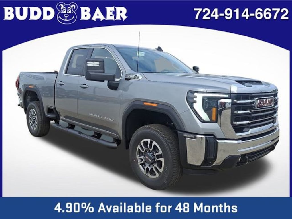 What Does Budd Baer GMC Offer Drivers from Washington, Canonsburg, St. Clairsville, Bethel Park and Wheeling? Truly Exceptional Customer Service from Every Angle. This vehicle comes equipped with Preferred Equipment Group 3SA (120-Volt Bed Mounted Power Outlet, 120-Volt Instrument Panel Power Outlet, 2 Charge-Only Rear USB Ports, 2 Charge/Data USB Ports, 2-Speed Electronic Shift Transfer Case, 4-Way Manual Driver Seat Adjuster, Chrome Surround Grille with Chrome Insert Bars, Deep-Tinted Glass, Keyless Open and Start, OnStar Services Capable, Push Button Start, SiriusXM with 360L Trial Subscription, Steering Wheel Audio Controls, and Wireless Phone Projection), Suspension Package, 10-Speed Automatic, 4WD, Black Cloth, 17 Machined Aluminum Wheels, 18 Machined Aluminum Wheels, 3.73 Rear Axle Ratio, 4-Way Manual Passenger Seat Adjuster, 4-Wheel Disc Brakes, 4 Round Black Tubular Assist Steps, 6 Speakers, 6-Speaker Audio System Feature, ABS brakes, Air Conditioning, Alloy wheels, AM/FM radio: SiriusXM with 360L, Apple CarPlay/Android Auto, Auto High-beam Headlights, Automatic Emergency Braking, Brake assist, Buckle to Drive, Bumpers: chrome, Cloth Seat Trim, Compass, Delay-off headlights, Driver door bin, Driver vanity mirror, Dual front impact airbags, Dual front side impact airbags, Electronic Stability Control, Emergency communication system: OnStar, Following Distance Indicator, Forward Collision Alert, Front 40/20/40 Split-Bench Seats, Front anti-roll bar, Front Center Armrest w/Storage, Front Pedestrian Braking, Front reading lights, Front wheel independent suspension, Fully automatic headlights, GMC MultiPro Tailgate, Heated door mirrors, Heavy-Duty 80 Amp Battery, Illuminated entry, IntelliBeam Automatic High Beam on/Off, Lane Departure Warning System, Low tire pressure warning, Occupant sensing airbag, Outside temperature display, Overhead airbag, Overhead console, Panic alarm, Passenger door bin, Passenger vanity mirror, Pickup Box, Power door mirrors, Power steering, Power windows, Premium audio system: Premium GMC Infotainment System, Radio: AM/FM Stereo with Premium GMC Infotainment System, Rear reading lights, Rear step bumper, Remote keyless entry, Speed control, Split folding rear seat, Steering wheel mounted audio controls, Tachometer, Tilt steering wheel, Traction control, Trip computer, Turn signal indicator mirrors, Variably intermittent wipers, and Voltmeter. KBB Fair Market Range High: $56,300 SLE