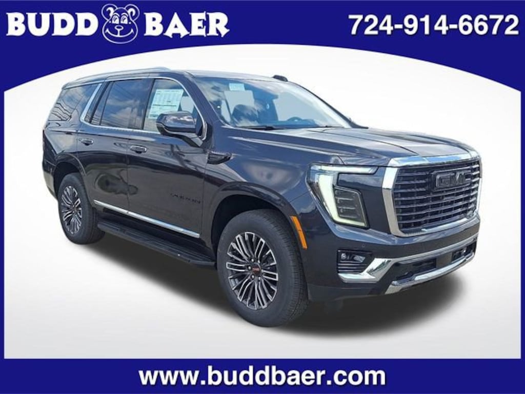 What Does Budd Baer GMC Offer Drivers from Washington, Canonsburg, St. Clairsville, Bethel Park and Wheeling? Truly Exceptional Customer Service from Every Angle. This vehicle comes equipped with Elevation Appearance Package (LPO) (Black Grille w/Chrome Surround (LPO), Black Nameplates (LPO), and Illuminated Front Black GMC Emblem (LPO)), Floor Liner Package (LPO) (1st & 2nd Rows All-Weather Floor Liners (LPO), 3rd Row All-Weather Floor Liners (LPO), and All-Weather Cargo Mat (LPO)), Max Trailering Package (Blind Zone Steering Assist w/Trailering, Extra Capacity Cooling System, Hill Descent Control, Hitch View, Integrated Trailer Brake Controller, and Smart Trailer Integration Indicator), Preferred Equipment Group 4SA, Super Cruise & Trailering Package (3 Years OnStar One (R9M), Driver Attention Assist, and Super Cruise), 4WD, 10 Speakers, 3 Years SiriusXM, 3.23 Rear Axle Ratio, 3rd row seats: split-bench, 4-Wheel Disc Brakes, ABS brakes, Air Conditioning, Alloy wheels, AM/FM radio: SiriusXM with 360L, Apple CarPlay/Android Auto, Audio memory, Auto High-beam Headlights, Auto-dimming door mirrors, Auto-dimming Rear-View mirror, Automatic temperature control, Bodyside moldings, Bose 10-Speaker Surround w/CenterPoint, Brake assist, Bumpers: body-color, Compass, CoreTec/Perforated Leather-Appointed Seating, Delay-off headlights, Driver door bin, Driver vanity mirror, Dual front impact airbags, Dual front side impact airbags, Electronic Stability Control, Emergency communication system: OnStar and GMC connected services capable, Exterior Parking Camera Rear, Floor Console, Four wheel independent suspension, Front anti-roll bar, Front Bucket Seats, Front Center Armrest, Front dual zone A/C, Front fog lights, Front reading lights, Fully automatic headlights, Garage door transmitter, Heated door mirrors, Heated Driver & Front Passenger Seats, Heated front seats, Heated rear seats, Heated steering wheel, Illuminated entry, Low tire pressure warning, Memory seat, Navigation system: GMC Connected Navigation, Occupant sensing airbag, Outside temperature display, Overhead airbag, Overhead console, Panic alarm, Passenger door bin, Passenger vanity mirror, Power door mirrors, Power driver seat, Power Liftgate, Power passenger seat, Power Release 2nd Row Bucket Seats, Power steering, Power windows, Premium Smooth Ride Suspension, Radio: 16.8 Diagonal Premium GMC Infotainment Sys, Rain sensing wipers, Rear air conditioning, Rear anti-roll bar, Rear reading lights, Rear seat center armrest, Rear window defroster, Rear window wiper, Remote keyless entry, Security system, SiriusXM w/360L, Speed control, Speed-sensing steering, Split folding rear seat, Spoiler, Steering wheel mounted audio controls, Tachometer, Telescoping steering wheel, Tilt steering wheel, Traction control, Trip computer, Turn signal indicator mirrors, Variably intermittent wipers, Voltmeter, and Wheels: 20 x 9 Machined & Painted. Elevation